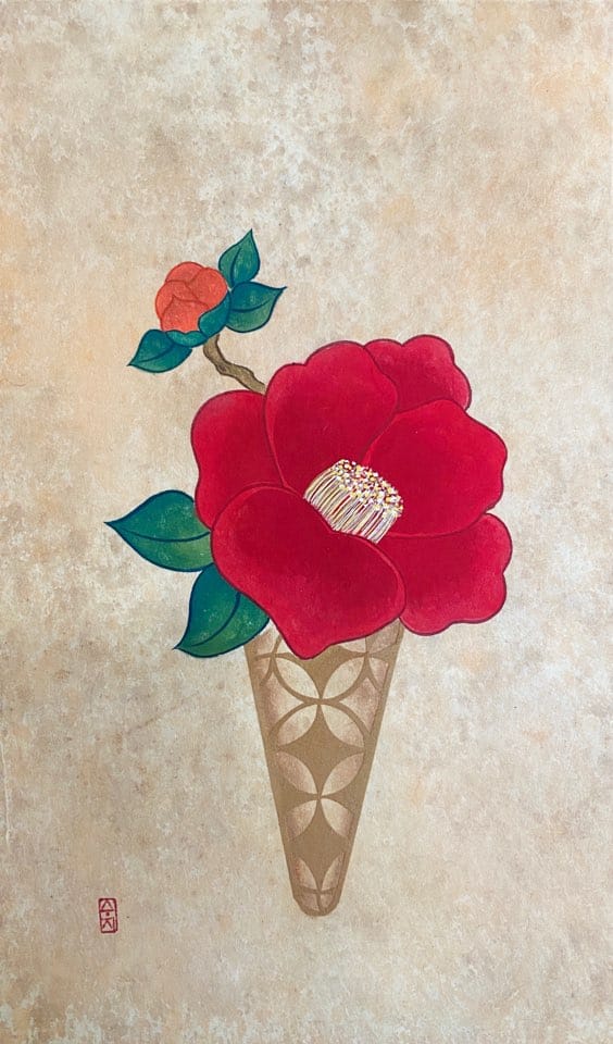 아이스크림의 콘은 색한지를 이중으로 배접하여, 전통문양으로 오렸으며, 민화 적인 소재인 모란, 연꽃, 동백 등의 소재를 담아 한국의 미를 표현한 작업이다.- 김수지