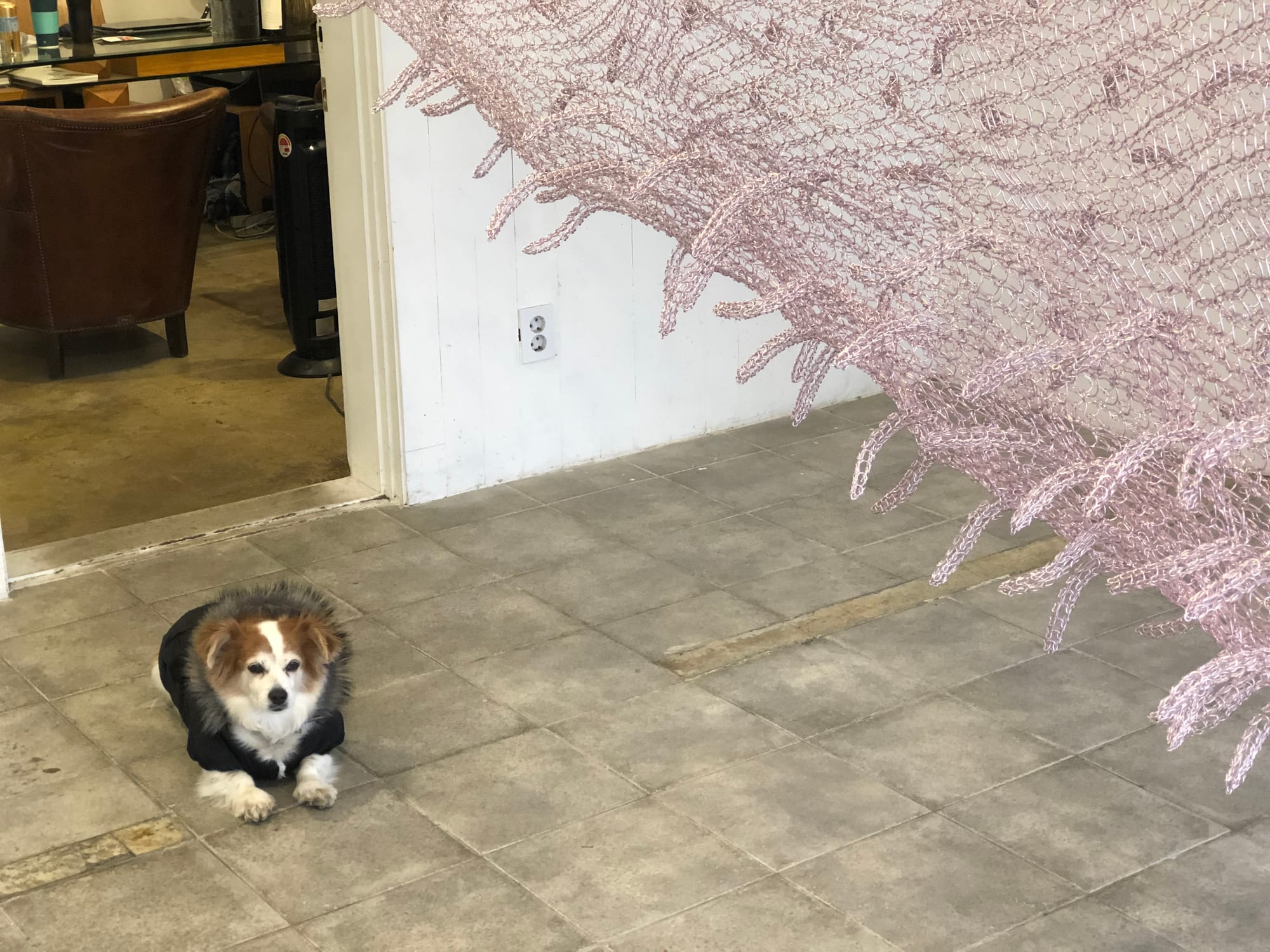바닥에 두면 그저 수많은 와이어 조각들의 연속이지만 스웨터를 몸에 걸치면 그 형태가 나타나듯 설치를 했을 때 비로소 작품의 구실을 한다.